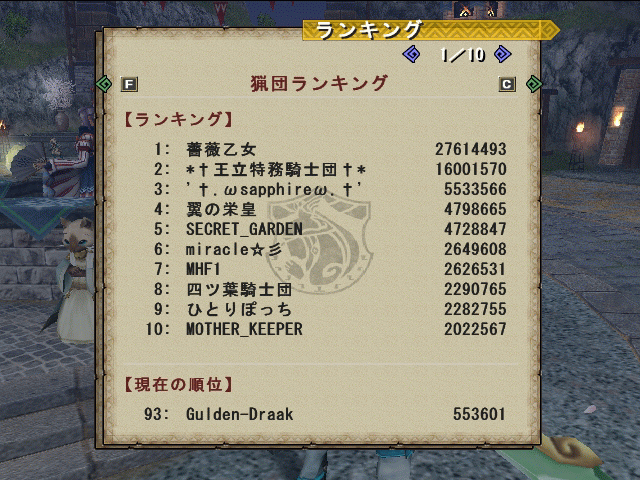 合計で100万を超えたハンターは21人、一方で猟団全体で100万を超えたのが33団であることから、ハンター達の一極集中的な傾向が伺える。僕自身も個人では250位だが、猟団全体では(合計が3倍弱にも関わらず)93位にランクインできている。