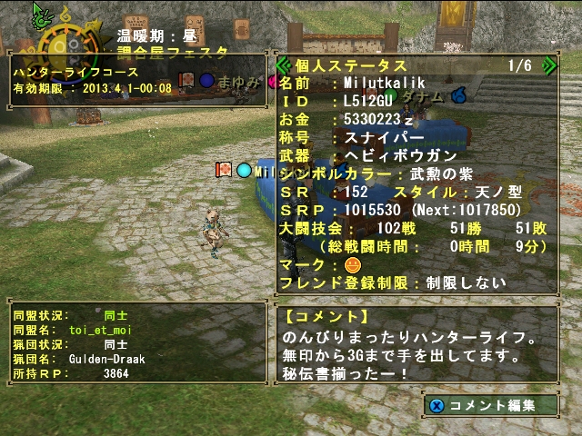 狩人祭も無事終了。今回は団長の上、最大で3倍なので頑張ってみた。